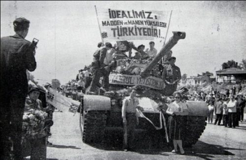 Hikmet Kıvılcımlı – Günün Parolası (Gençlik+Ordu+Adalet) Elele Türk Solu – Sayı 79 – 20 Mayıs 1969 Finans-Kapital tepeden kişisel sloganını atmıştır: (İNONÜ + BAYAR + DERMİREL)...